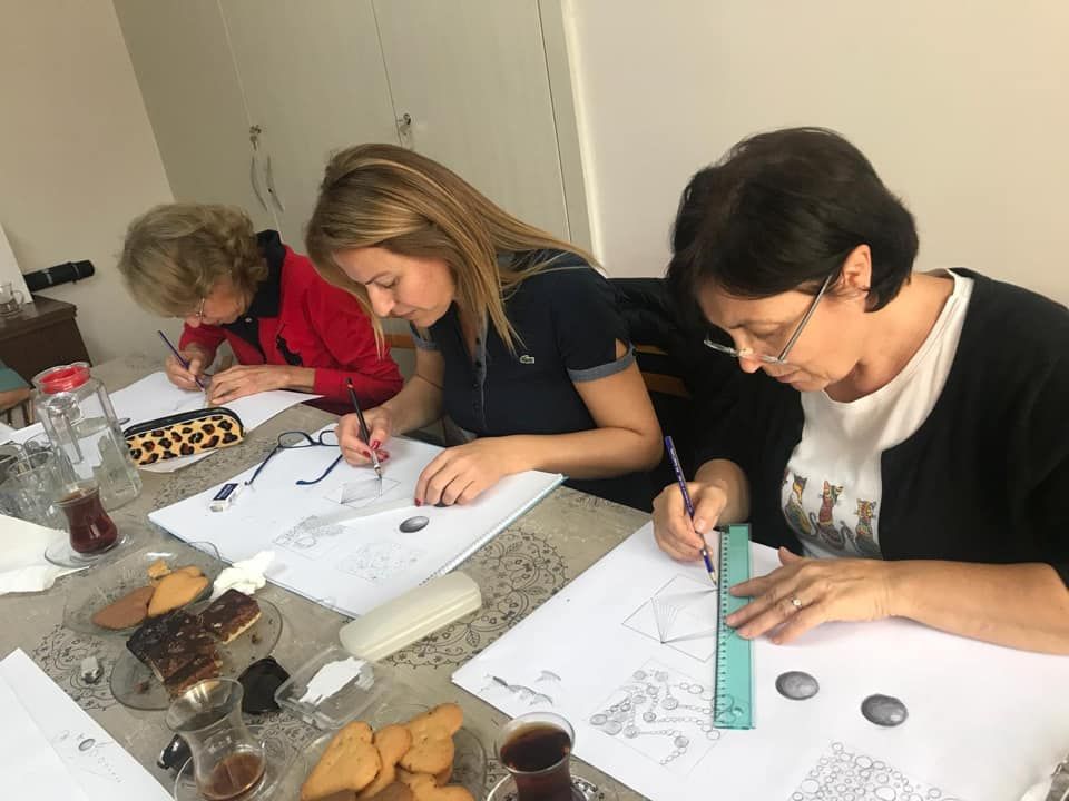 Bugün derneğimizde bu dönemin Resim - Ney eğitimi başladı. Eğitmenimiz Ayfer Açar ile resim teknikleri , resimi meydana getiren üç temel bilgisi nokta, çizgi,leke ve bunların uygulanması ile müzik aleti ney üzerine kısa bilgiler alıp uygulamaya geçtik. Nasıl geçti zaman anlayamadık , öylesine keyifli ve zevkliydi ki . Günün bir başka güzelliği burslu öğrencimizinde aramızda olmasıydı . Biz her hafta cuma günü saat 11 de derneğimizde olacağız sanata gönül vermiş üyelerimizi bekleriz . Ayfer hocamıza zaman ayırıp gönüllü bizlere sanatın güzelliklerini paylaşıp , emek harcadığı için sonsuz teşekkürler... Y.Kurulu